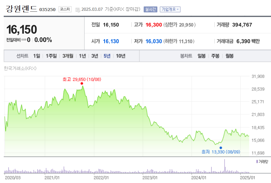 강원랜드의 주가는 지난 팬데믹 시기부터 지속적으로 하락 곡선을 그리다가 지난 '24년 8월 전저점을 기록 한 후 일부 회복세를 보이고 있습니다. 규제 완화 및 주주환원에 대한 기대감으로 증권가에서는 최근 목표가를 일부 올리고 있는 상황입니다.