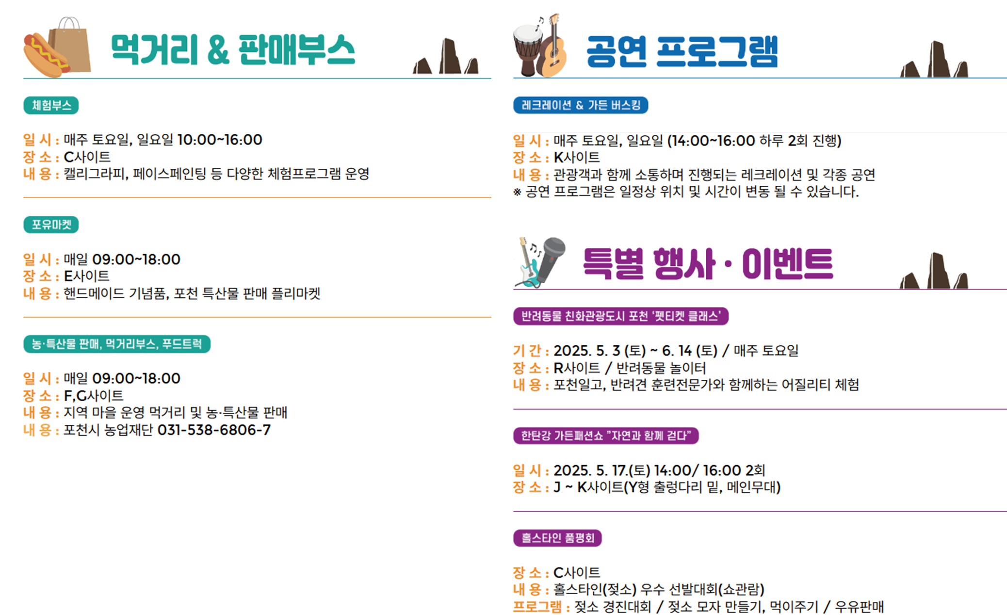 - 장소: 경기도 포천시 관인면 창동로 832, 한탄강 생태경관단지