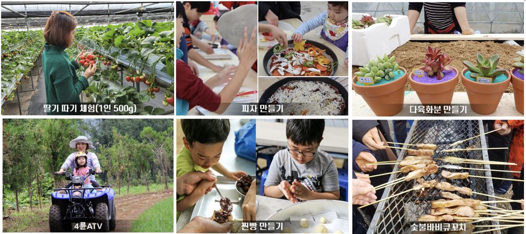 2. 패키지 선택: 딸기 먹고 담기(500g), 4륜 ATV, 다육화분만들기, 숯불바비큐꼬치, 피자만들기, 찐빵만들기
