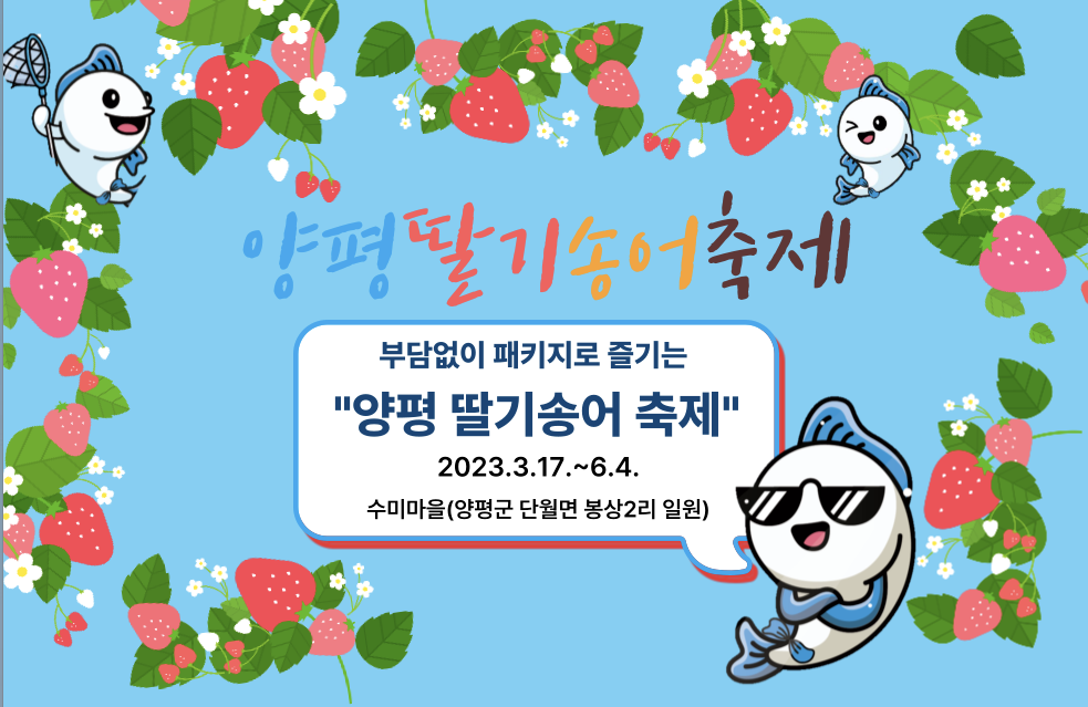 양평의 맑은 물과 농촌관광의 메카인 수미마을의 딸기와 송어의 우수성을 알리고자 봄을 맞이해서 ‘양평딸기송어축제’을 기획하였으며, 대한민국을 대표하는 축제로 발전해 나아가고자 합니다.