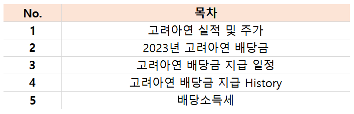 고려아연은 아래 일정으로 반기/연말 배당을 지급합니다. ('23년 기준)