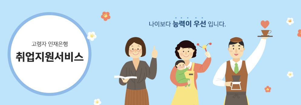 - 지원내용: 1. 취업 희망 고령자에 대한 구인 및 구직 등록, 직업 지도 및 취업 알선(상용/일용)