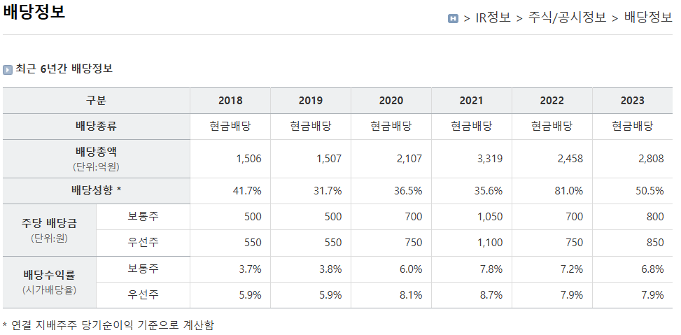 배당금 : 950원 (보통주) / 1,000원 (우선주)