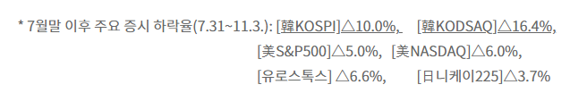 7월말 이후 주요 증시 하락율 (출처 : 금융위원회)