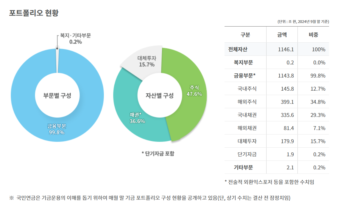 국민연금 고갈시기는? 보유 중인 한국/미국 주식 등 포트폴리오 현황 (feat. 국민연금 수익률)