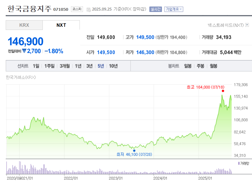 한국금융지주: 한국투자증권을 중심으로 종합 금융 서비스 기업으로 자리잡고 있습니다.