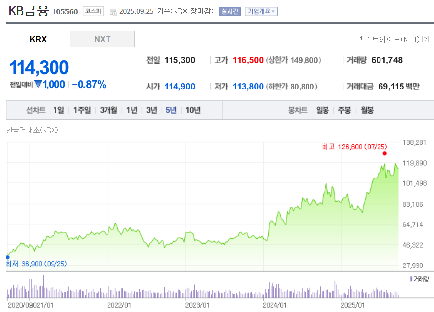 KB금융지주: 국내 최대 금융지주 중 하나로, 안정적인 실적과 배당 매력이 강점입니다.