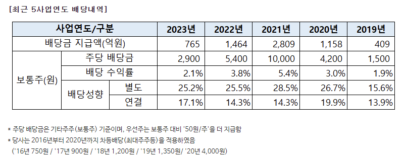 금호석유화학은 주주가치 제고를 위해 매년 배당을 실시하고 있습니다.