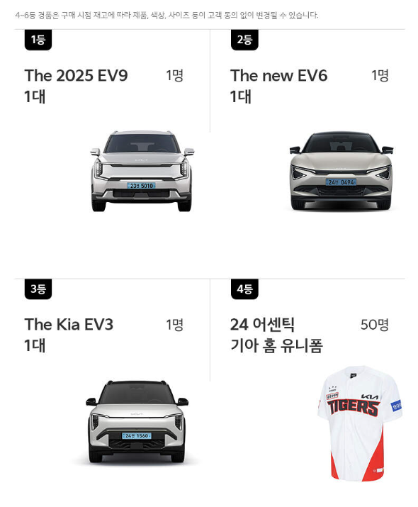 또한, 기아 스토어 방문 행사가 진행됩니다. 가까운 스토어에 방문하여 스토어에 비치된 QR코드를 찍고 이벤트 폼을 작성하면, 추첨을 통해 EV9, EV6 등 푸짐한 상품을 증정합니다. 특히나, 메가커피의 아메리카노 쿠폰은 100% 증정 행사를 진행하오니, 참여하는 재미가 더욱 커질 듯 합니다.