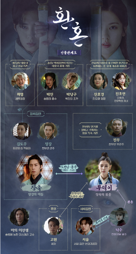 장강의 친구이자 대호국 최대 기업인 송림의 총수인 박진(유준상)은 친구의 부탁으로 장욱을 돌보며, 장욱이 기문을 뚫지 못하도록 지켜봅니다. 아무것도 할 수 없는 약골의 몸으로 살아가는 장욱은 반항심만 커져 갑니다. 술법을 익히지 못해 12명의 스승에게 파문당한 장욱은 우연히 낙수의 혼이 깃든 환혼인 무덕이(정소민)를 만나게 됩니다. 그녀라면 자신의 막힌 기문을 뚫어줄 수 있겠다는 믿음으로 무덕이를 위기에서 구해주며 스승이 되어주길 청합니다. 무덕이(낙수)는 장욱의 능력을 키워 자신의 기력을 되찾기 위해 제자로 삼고 몸종으로 지내며 정체를 숨깁니다. 낙수는 처음에 장욱보다 자신의 목표를 우선시하지만, 맹목적이고 자신만 바라보는 장욱에게 마음을 열게 됩니다.
