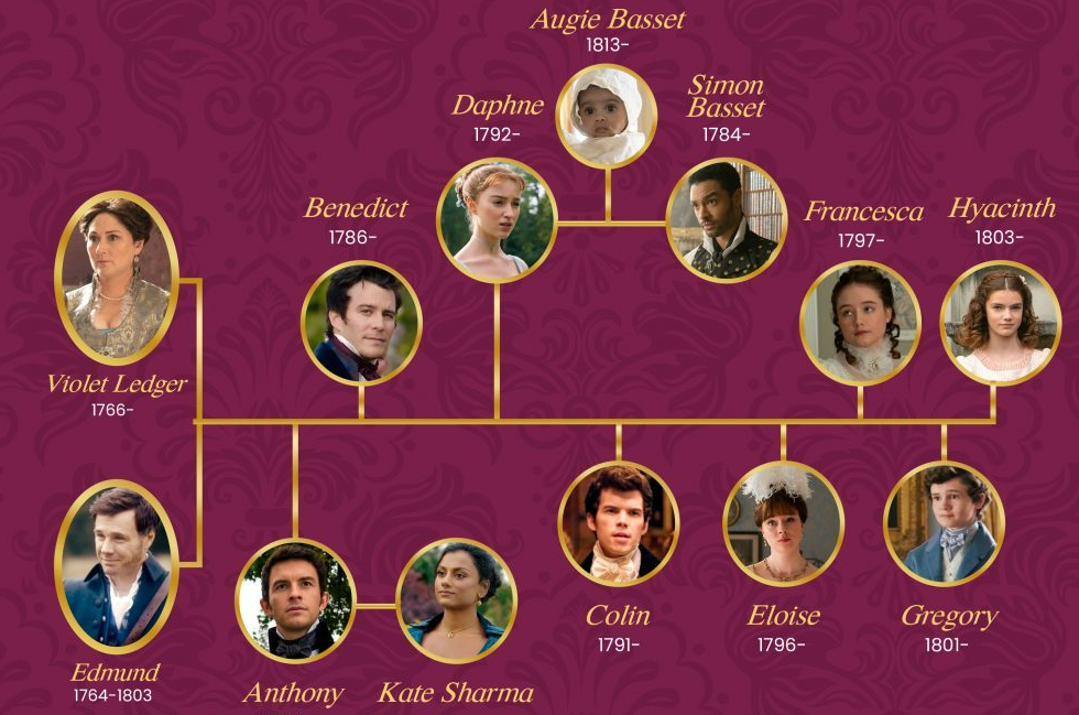 브리저튼 가문의 가계도(앤소니, 베네딕트, 콜린, 다프네, 엘로이즈, 프란체스카, 그레고리, 히아신스)