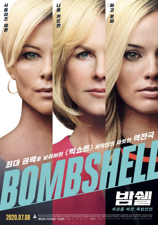 실화 기반이다 보니 다큐멘터리에 가깝게 연출된 실제 화면들(트럼프와 메긴 켈리의 토론, 성폭력 피해자들의 증언 등)이 중간중간 도입되어 더 몰입감 있게 감상할 수 있었습니다. 이 영화의 가장 중요한 장면으로 꼽히는 엘리베이터 장면은 친한 사람들이 서로를 돕는 것이 아닌, 피해자라는 입장이 서로 연대하게 하는 가장 큰 원동력이라는 점을 보여줍니다. 아쉬운 부분도 있습니다. 이 영화가 보여주려는 것은 권력에 강요받는 성범죄 구조의 문제인데, 도널드 트럼프를 비난하는 데 상당한 시간과 대사를 할애하는 점입니다. 마지막 부분에서 세 주인공의 흐름이 매끄럽지 못하고 끊기는 점도 아쉬웠죠. 하지만 그레첸, 메긴, 케일라는 각자 자신의 생계, 커리어, 꿈이 무너지는 것을 감수하며 용기를 냈습니다. 절대적 존재로 무너지지 않을 것 같던 성범죄자를 무너뜨린 세 사람의 용기를 보는 것만으로도 가치 있는 영화인 것 같습니다. 밤쉘 추천합니다!