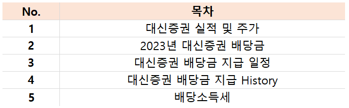 대신증권은 아래 일정으로 연말 배당을 지급합니다. ('23년 기준)