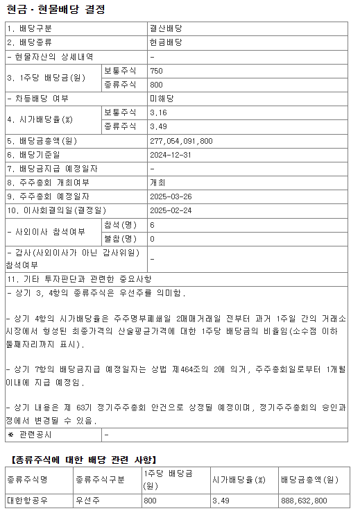 2. 2024년 대한항공 결산 배당금