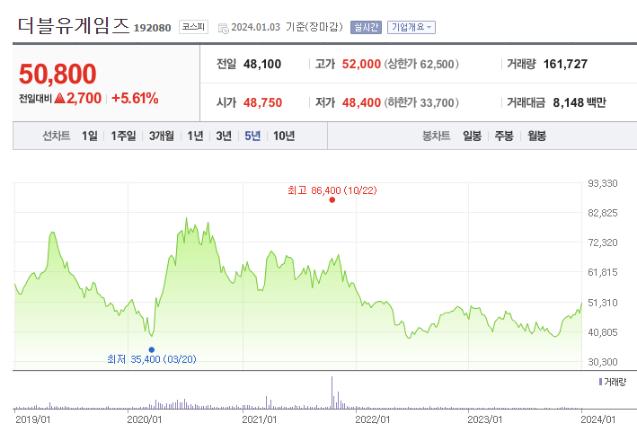 1. 더블유게임 주가