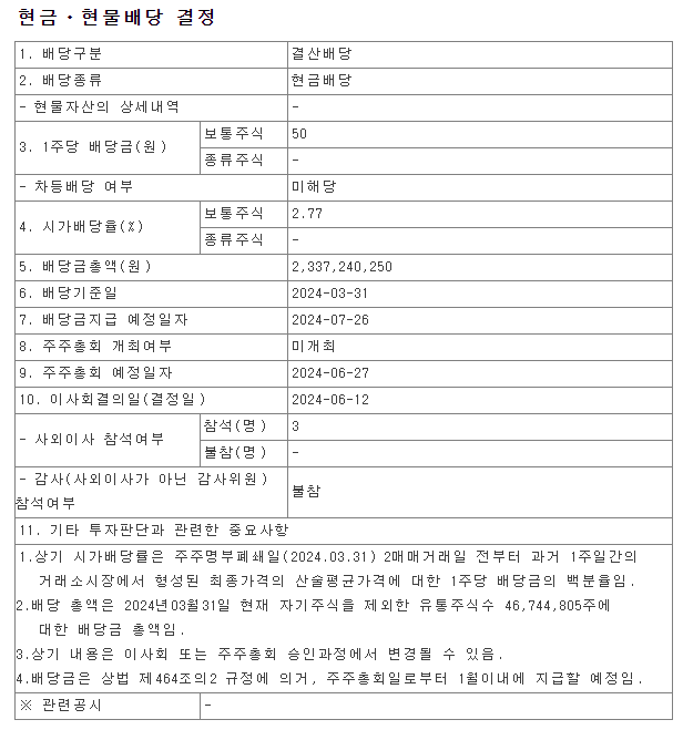 2024년 반기 배당 배당주/배당금 기업 완전 정복!(분기 배당, 중간 배당, 배당 결정 및 공시, 배당