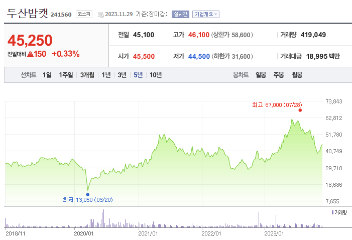 1. 두산밥캣 주가