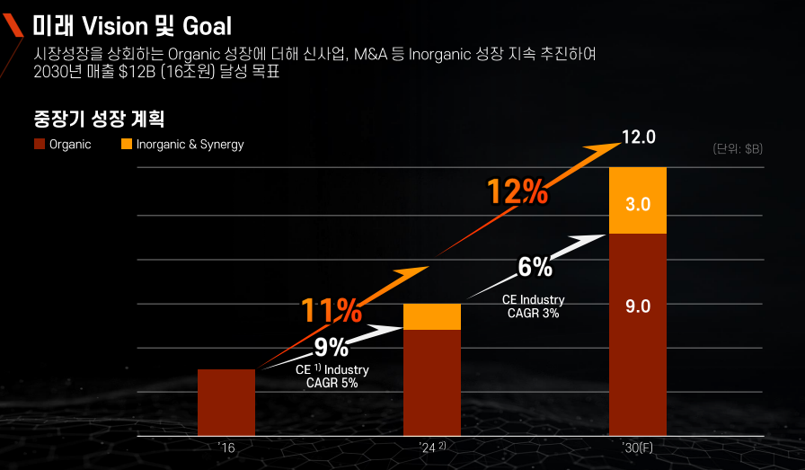 이를 위해서는 '24년부터 '30년까지 CAGR(연평균성장률) 12%를 달성하여야 하는 공격적인 목표를 수립하였습니다.