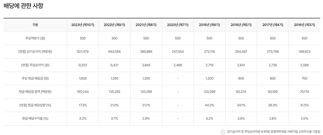 그리고, 현재 연 2회 중간배당과 결산배당을 실시중이나, 향후 분기배당 개념을 도입하여 주주들에게 매 분기 배당 수익을 안겨줄 예정입니다.