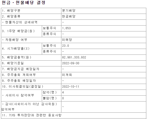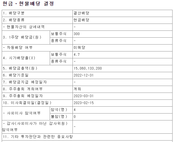 배당일 : 4월 ('22년 배당 기준)