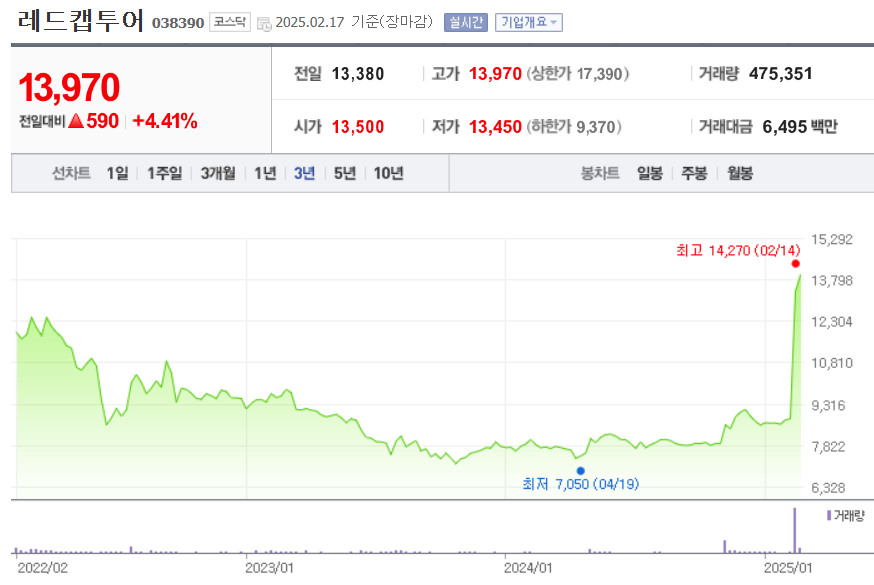 1. 레드캡투어 주가
