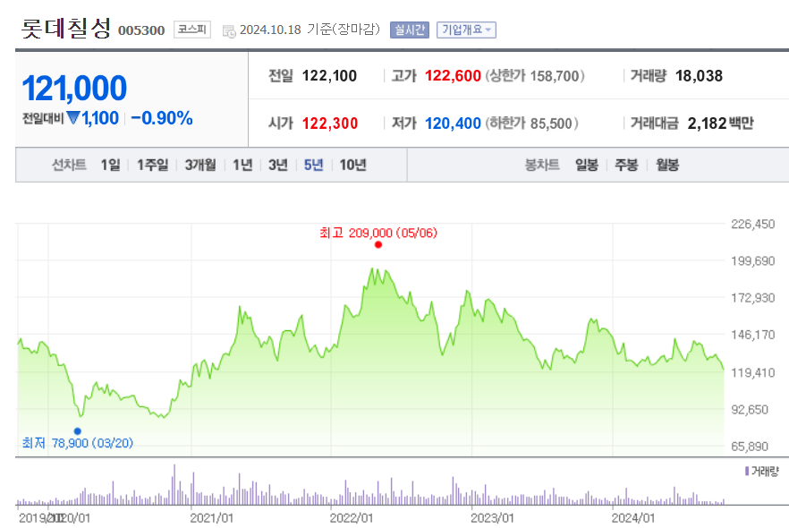 [롯데칠성 주가]