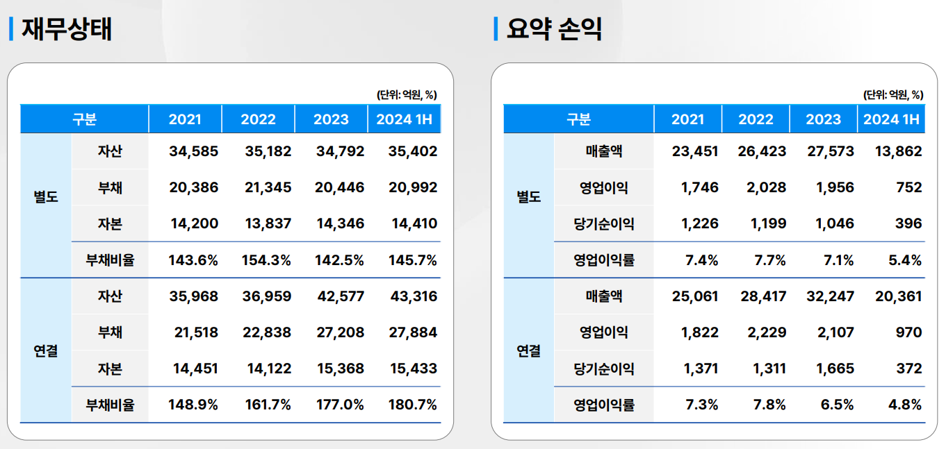 매년 영업이익률 7% 내외의 견조한 실적을 기록하고 있으며, 부채비율도 그다지 높지 않아, 안정적인 수익을 내는 사업을 전개하고 있다고 볼 수 있겠습니다.
