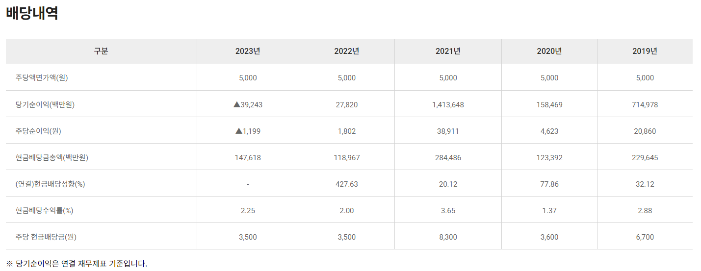 배당금 : 주당 1,000원 (보통주)