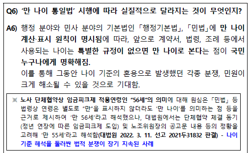 - 그 동안 나이 해석과 관련하여 발생했던 법적 다툼과 민원이 크게 감소 가능