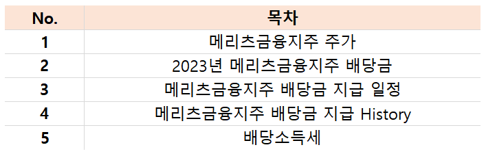 배당 조건 : 23/12/31일까지 메리츠금융지주 주식 보유