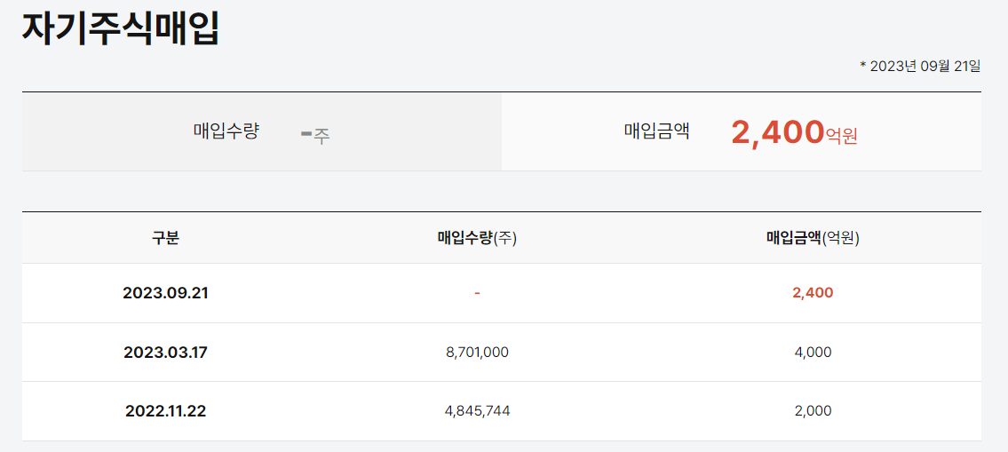 - 2023년 당기순이익 : 2조 1,333억원 (전년대비 0.0% 증가)