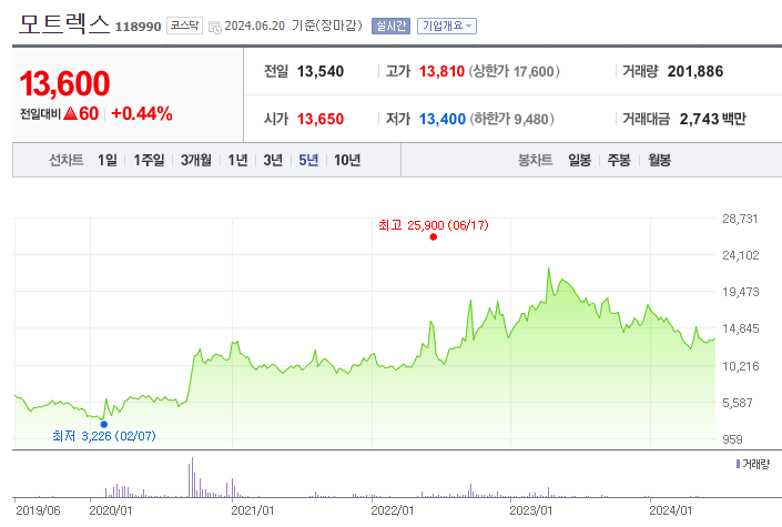 모트렉스 주가 (출처 : 네이버 증권)