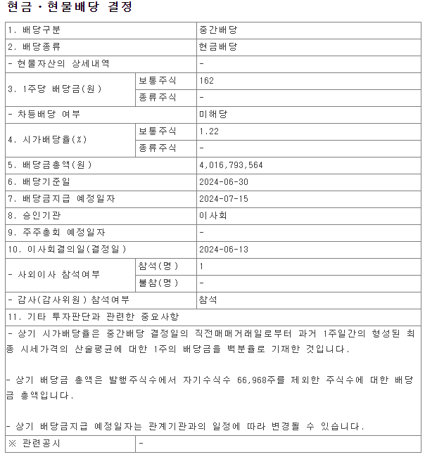 - 배당금 : 162원 ( 보통주 / 우선주 동일)