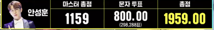 안성훈은 준결승전 신곡 미션 최종 결과 총점 1,959점을 기록해 준결승 1위로 결승전에 진출했습니다.