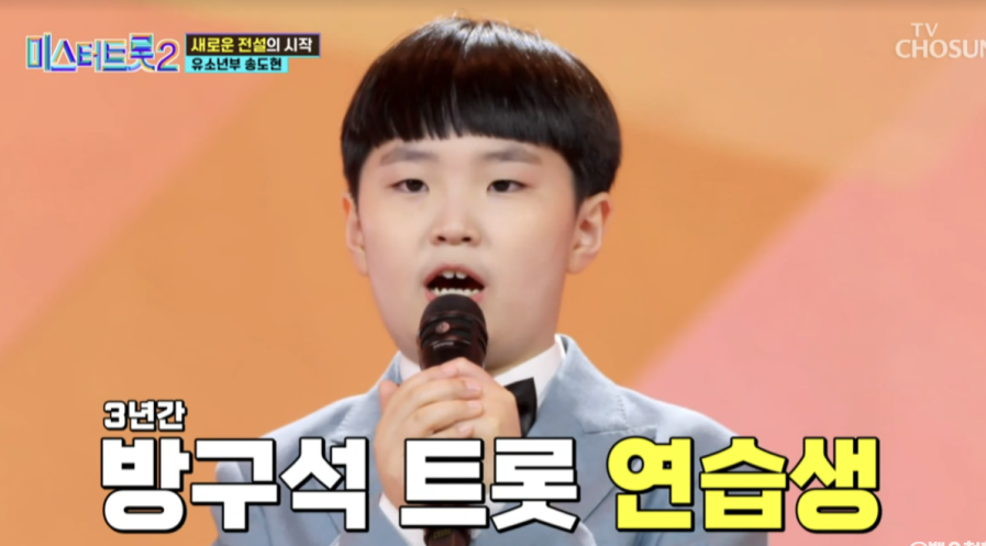 12세 송도현은 방구석에서 무려 3년 동안 아버지에게 트로트를 전수받으며 실력을 쌓은 참가자입니다. 그는 자연스럽게 가성에서 진성으로 넘어가는 기술을 보여주며 첫 데뷔 무대를 금빛으로 물들이며 ♡올하트를 받았습니다.