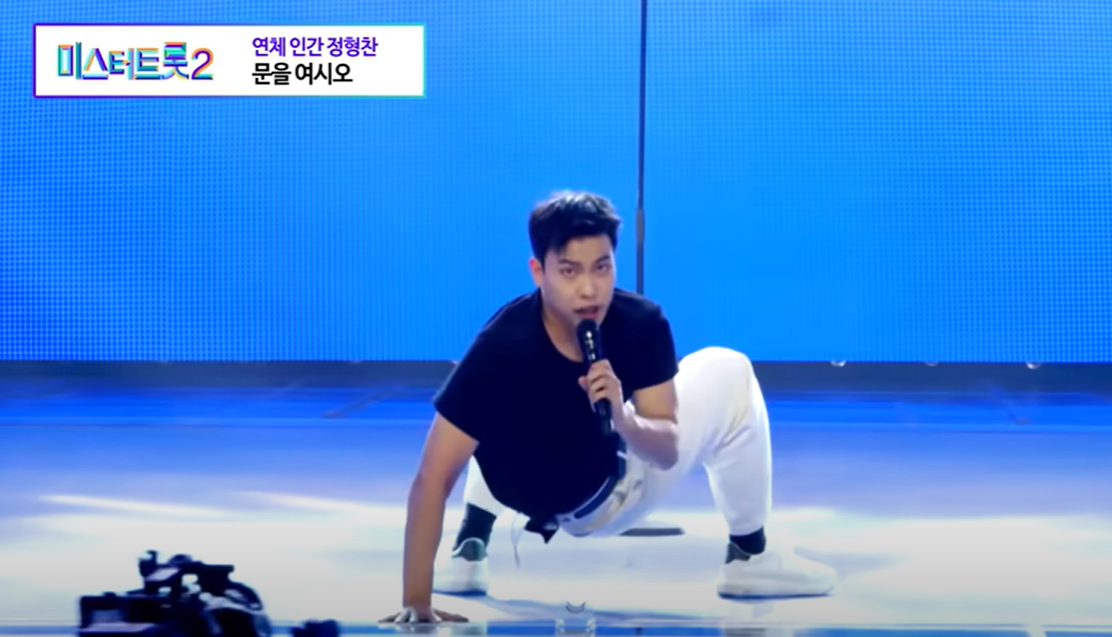 '세상에 이런 일이' 1080회에 출연했던 정형찬은 그야말로 입이 떡 벌어지는 기상천외한 무대를 선보였습니다. 뒤돌아서서 고개만 180도로 꺾어 앞을 바라보며 무대를 시작한 정형찬은 손목 360도 돌리기, 발목 180도 꺾기, 손가락 뒤로 꺾어 하트 만들기, 상/하체 분리하며 돌리기 등 연체동물 같은 퍼포먼스로 마스터들을 충격의 도가니에 빠트렸습니다. 어렸을 때부터 인대가 유연해서 가능한 동작이라고 밝힌 정형찬은 14개 하트를 받아 예비 합격자가 되었습니다.