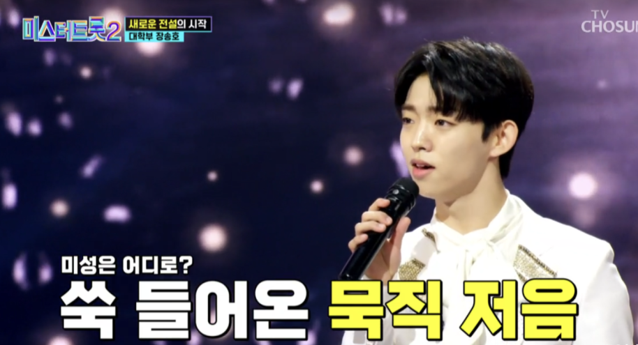 장송호는 오디션 현장이 지하 100층인 듯한 착각을 들게 하는 초저음의 보유자로, 20살의 젊은 나이에 가수 현인의 1948년 정통 트로트를 선보였습니다. 목소리와 기교 중 어느 하나 빠지지 않는 무대로 ♡올하트를 받으며 다음 무대로 진출했습니다.