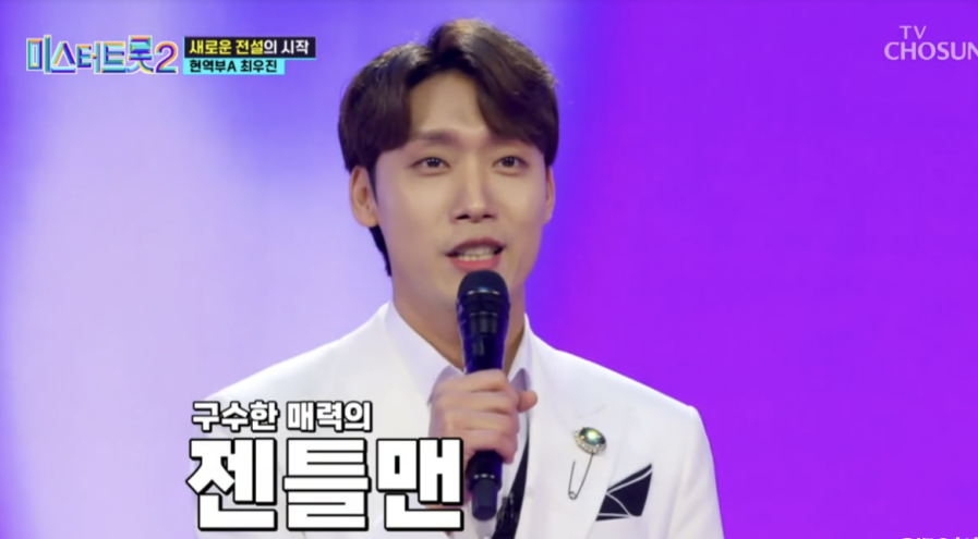 최우진은 현재 활동 중인 데뷔 7년 차 현역 트로트 가수로, 많은 무대 경험과 탄탄한 실력을 보유한 인물입니다. 젠틀한 외모와 다르게 구수한 창법으로 소문난 최우진은 시원한 꺾기를 보여주며 현역의 진가를 보여주며 ♡올하트로 다음 무대에 진출했습니다.