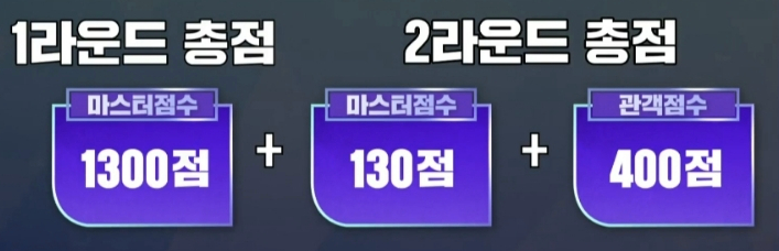 본선 4차 2라운드에서는 1R 마스터 점수(1300점 만점)+2R 마스터 점수(130점 만점)와 관객점수(400점 만점)을 더해 가장 점수를 많이 받은 Top 10이 준결승에 진출했습니다.