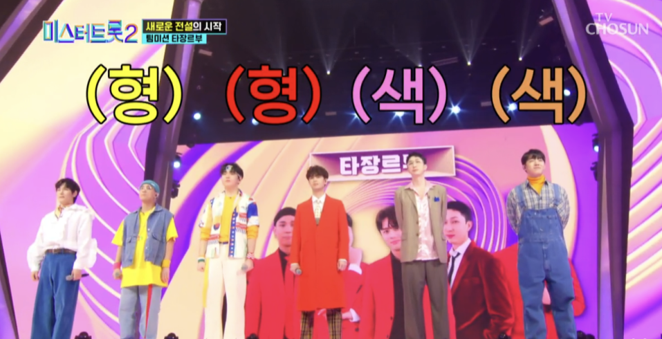 황기동, 더레이, 홍승민, 성유빈, 슬리피, 길병민으로 구성된 타장르부는 7080 대표 댄스곡인 김완선의 '리듬 속에 그 춤을'을 선곡했습니다. 타장르부는 쫀득한 랩, 소울 충만한 R&B, 톡 쏘는 록, 고농축 발라드, 맑은 성악, 완숙한 성악이 모두 만난 개성 강한 팀이었습니다. 타장르부는 이러한 각자의 장르를 잘 녹여서 장점화하자는 전략을 세워 장르 뷔페가 담긴 무대를 선보였습니다. 하지만, 이 컨셉이 트로트 무대에서는 어울리지 않았습니다.