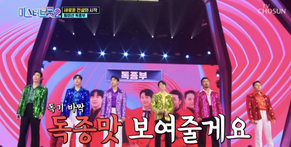 원혁, 용호, 정연찬, 이찬성, 고강민, 최전설로 이루어진 독종부는 댄스 트롯으로 최신 발매된 김영철의 '막가리'를 선곡했습니다. 독종부의 퍼포먼스는 화려 그 자체였습니다. 연체 인간 따발총, 인간 독거미, 인간 자전거까지 퍼포먼스를 모두 모아 놓았습니다. 하지만, 보컬이 퍼포먼스를 따라가지 못했습니다. 노래가 잘 들리지 않았고 화음도 썩 좋지 않았습니다.