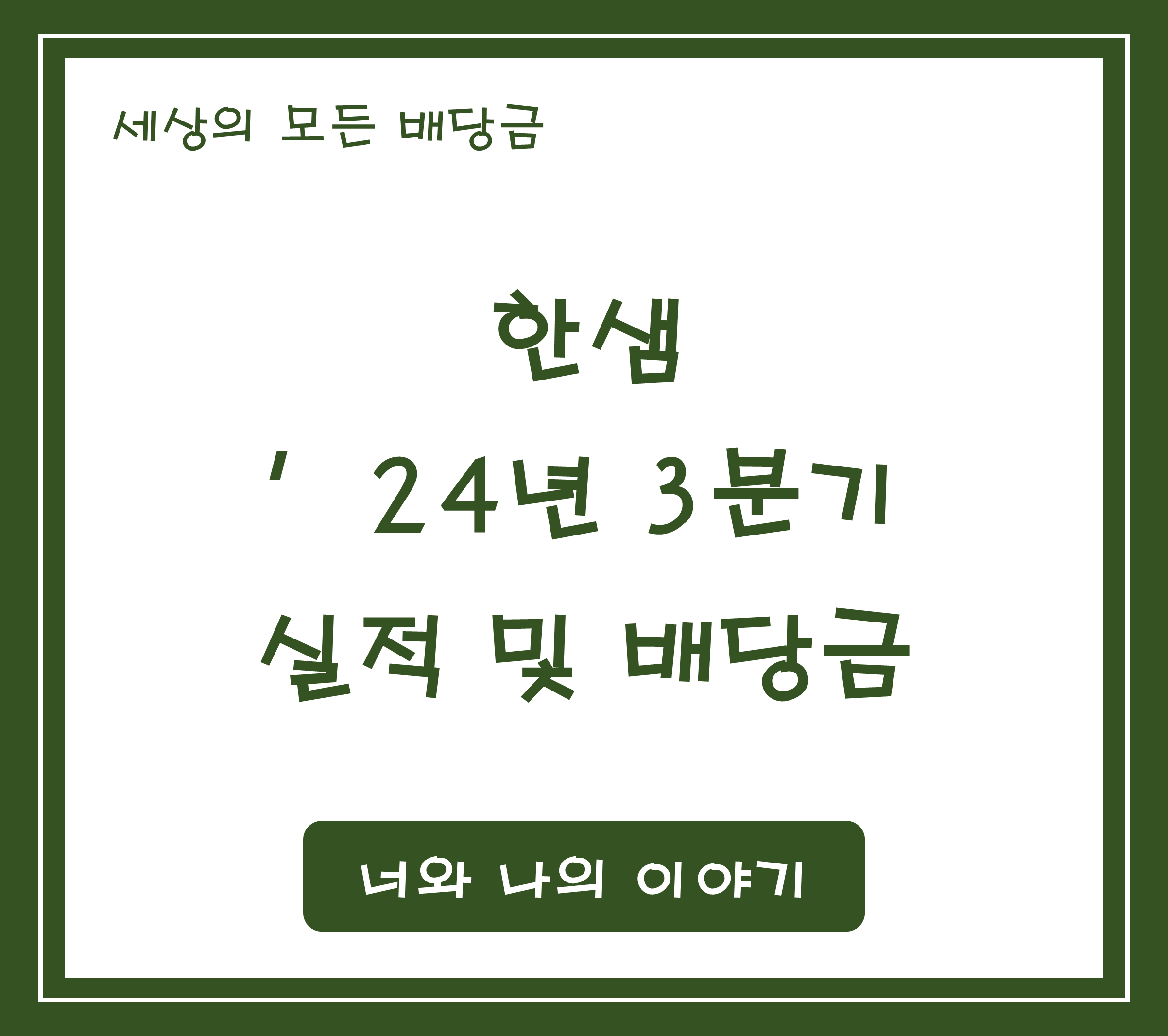 분기 배당율 11% 초고배당, 한샘 배당금 - 2024년 3분기!! (실적, 분기배당, 주가, 배당일, 지급일, 배당락, 반기배당, 중간배당)