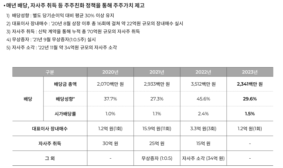 브랜드엑스코퍼레이션은 주주가지 제고를 위해 '24년도 분기 배당을 지급할 예정입니다.