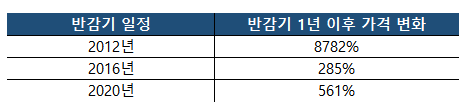 비트코인 반감기는 역사적으로 입증된 가격 상승의 요인입니다. 지난 3번의 반감기 이후 어김없이 비트코인 가격은 상승을 하였습니다.