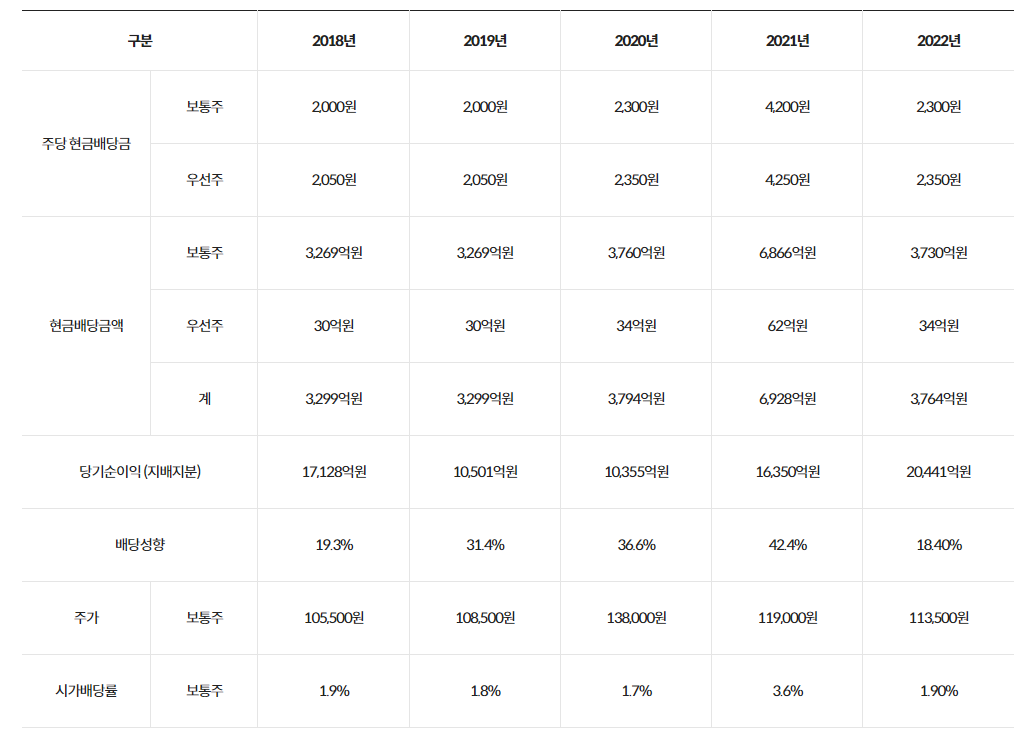 배당금 : 보통주 2,550원 / 우선주 2,600원