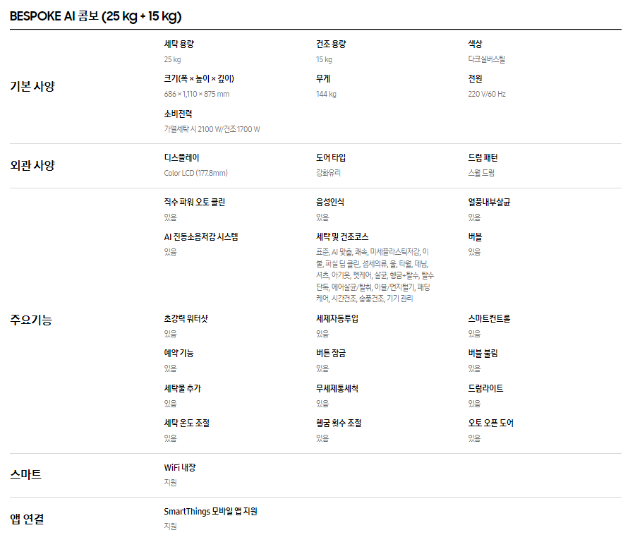 BESPOKE AI 콤보 (25 kg + 15 kg) | WD25DB8995BZ | Samsung 대한민국