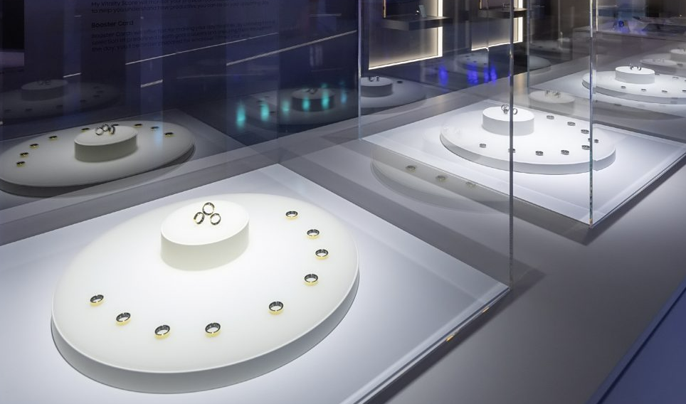 MWC24 삼성전자 갤럭시 전시부스에 진열된 ‘갤럭시 링’ 실버 색상 (출처 : 삼성전자 공식 홈페이지)