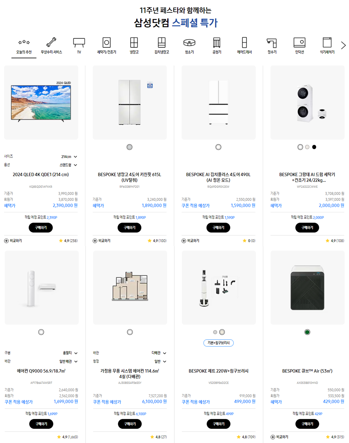 삼성닷컴 11주년 페스타 인기 제품을 할인 혜택과 함께 만나보세요