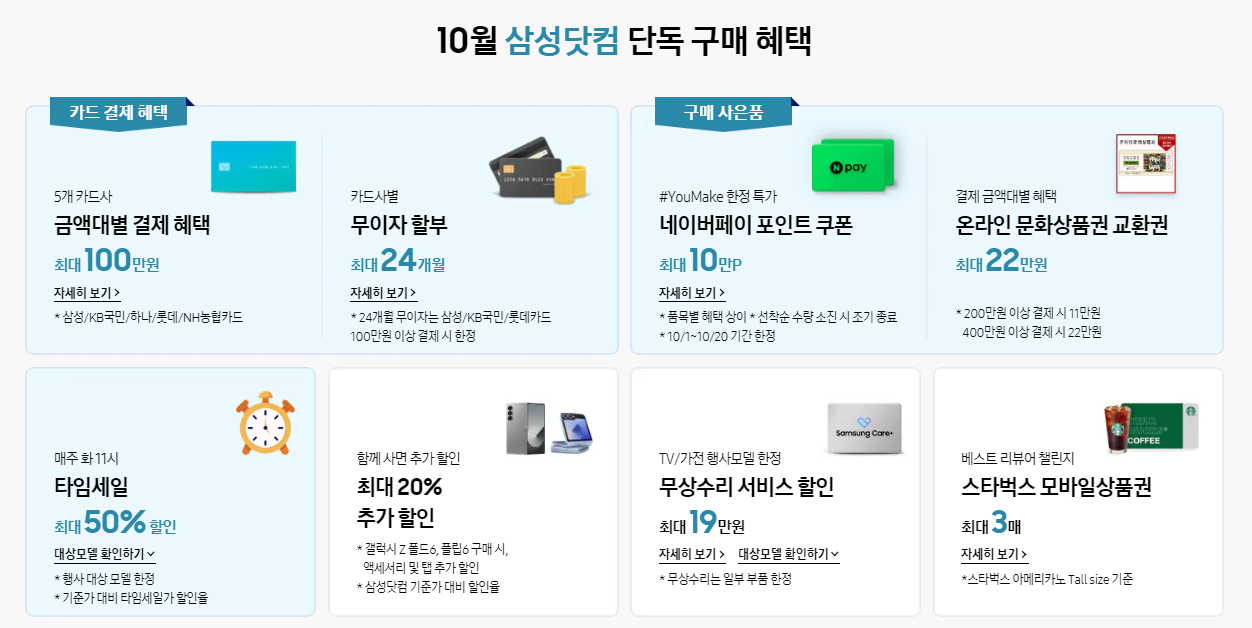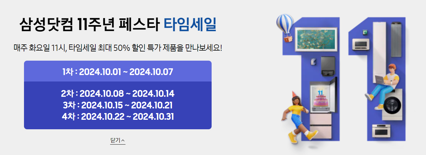 | 삼성전자, 최대 50% 할인 / 세일 혜택 - '삼성닷컴 11주년 페스타' (2주차 업데이트) (4) | 2024.10.10 |