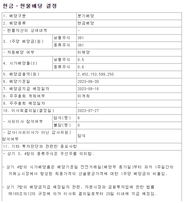 | 2023년 2분기 KT&G 배당금 지급 예정!! 주가, 반기 배당, 중간 배당, 분기 배당 (0) | 2023.07.19 |